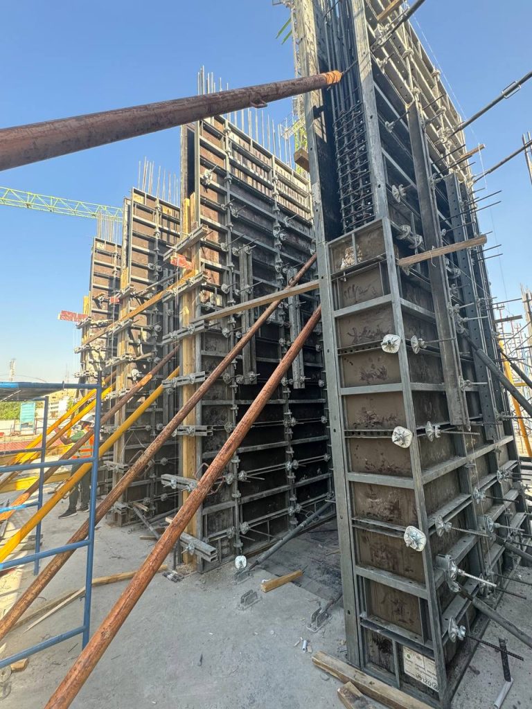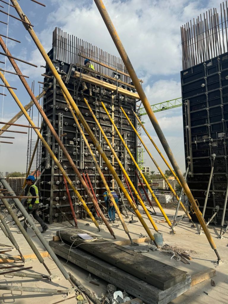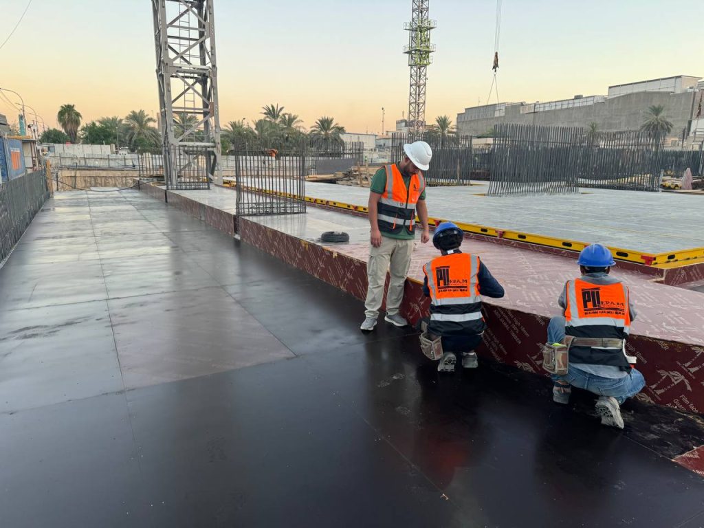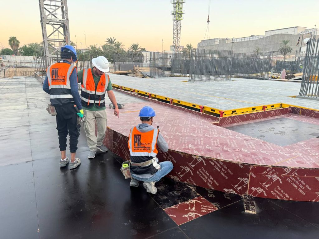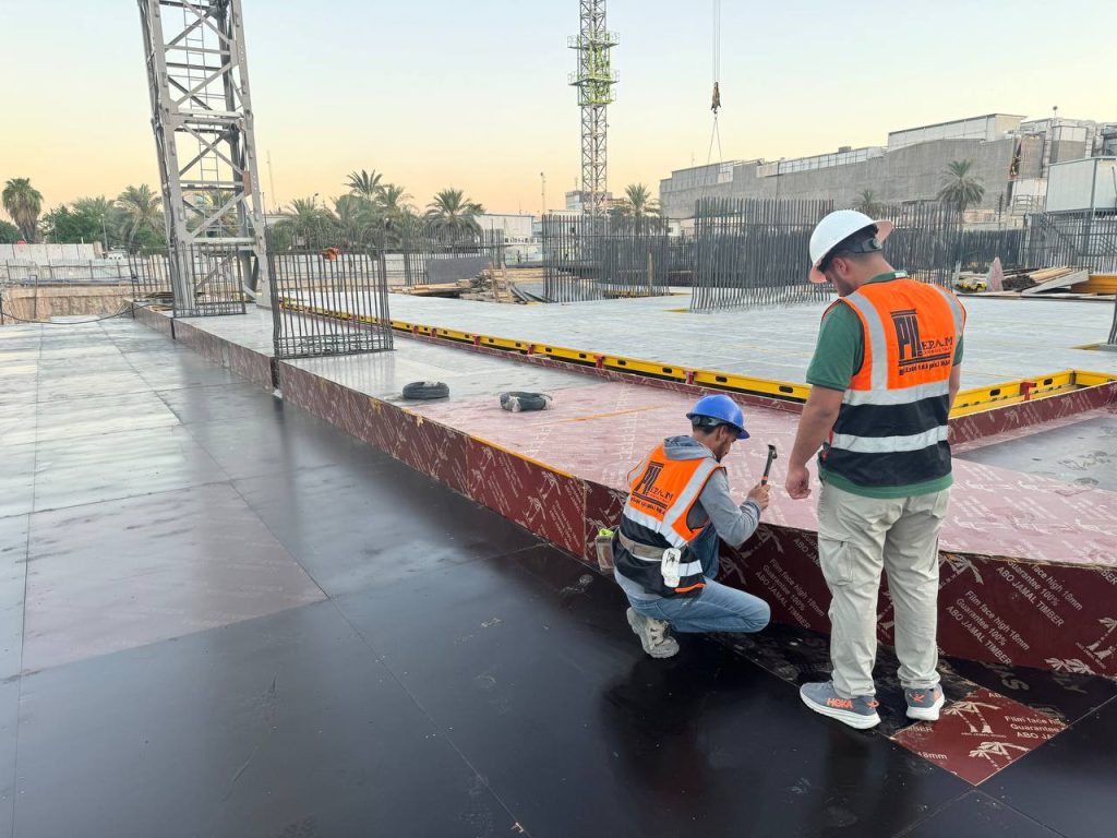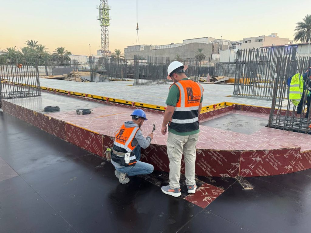 مشروع ابراج الجادرية السكني متكون من برجين بعدد طوابق ٢٨ طابق تم تنفيذ الهيكل الخرساني باستخدام انظمة قوالب مختلفة منها البيري سلاب , دوكا سلاب ، دومينو