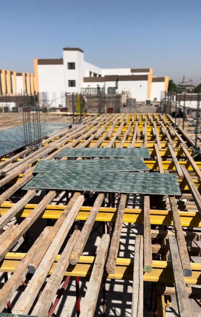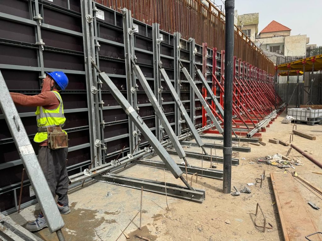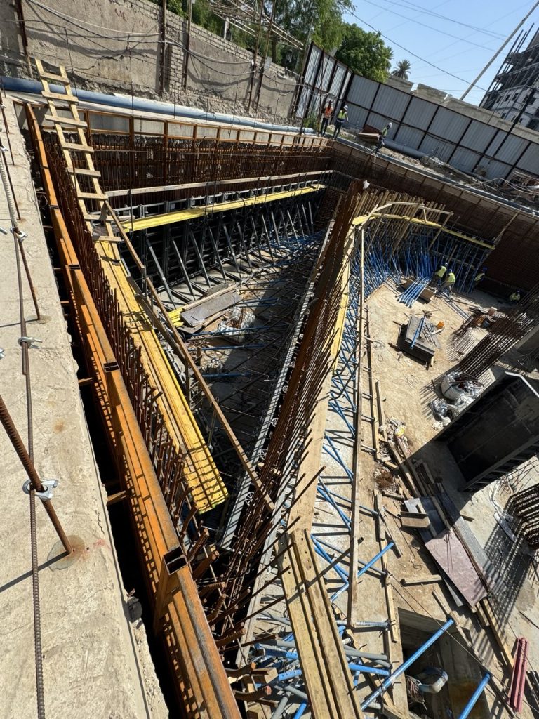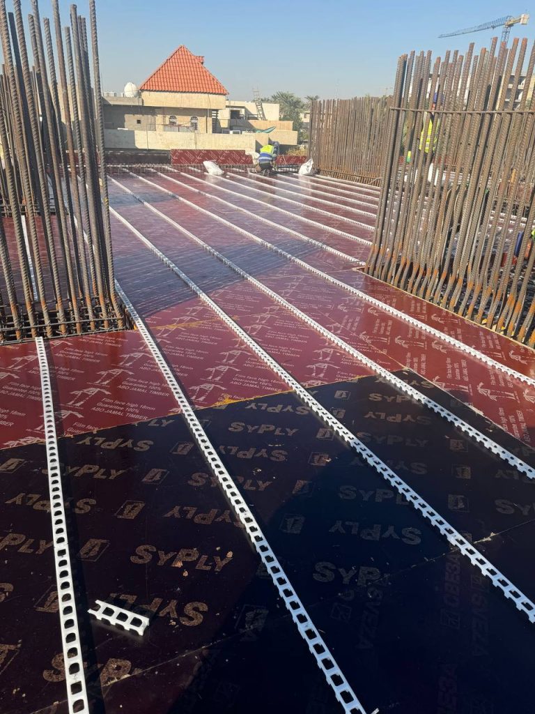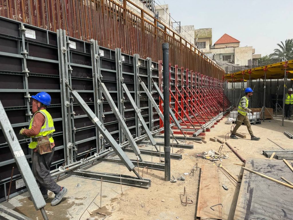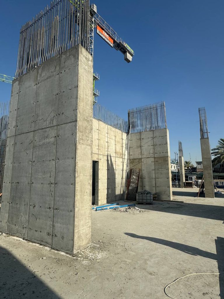 مشروع ابراج الجادرية السكني متكون من برجين بعدد طوابق ٢٨ طابق تم تنفيذ الهيكل الخرساني باستخدام انظمة قوالب مختلفة منها البيري سلاب , دوكا سلاب ، دومينو