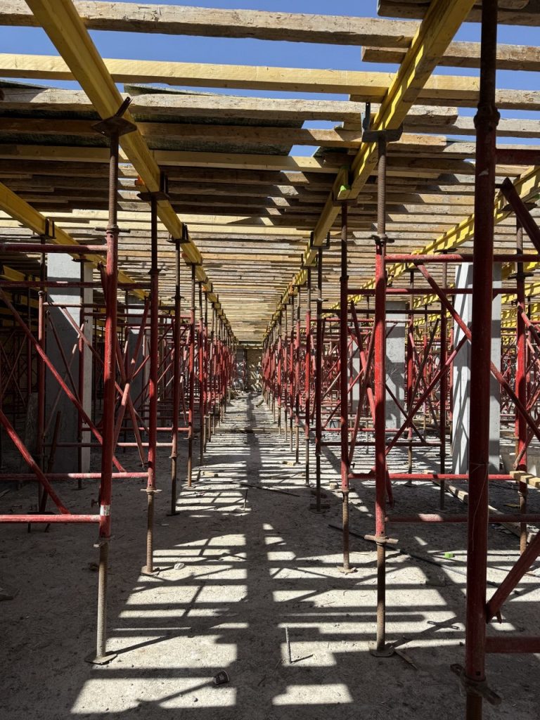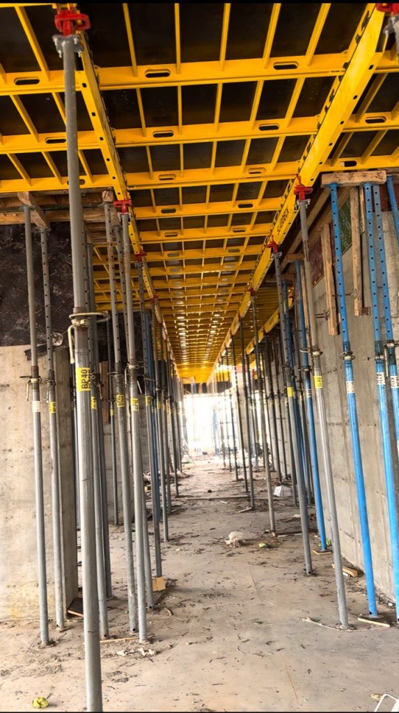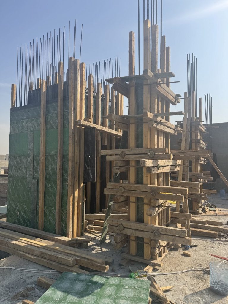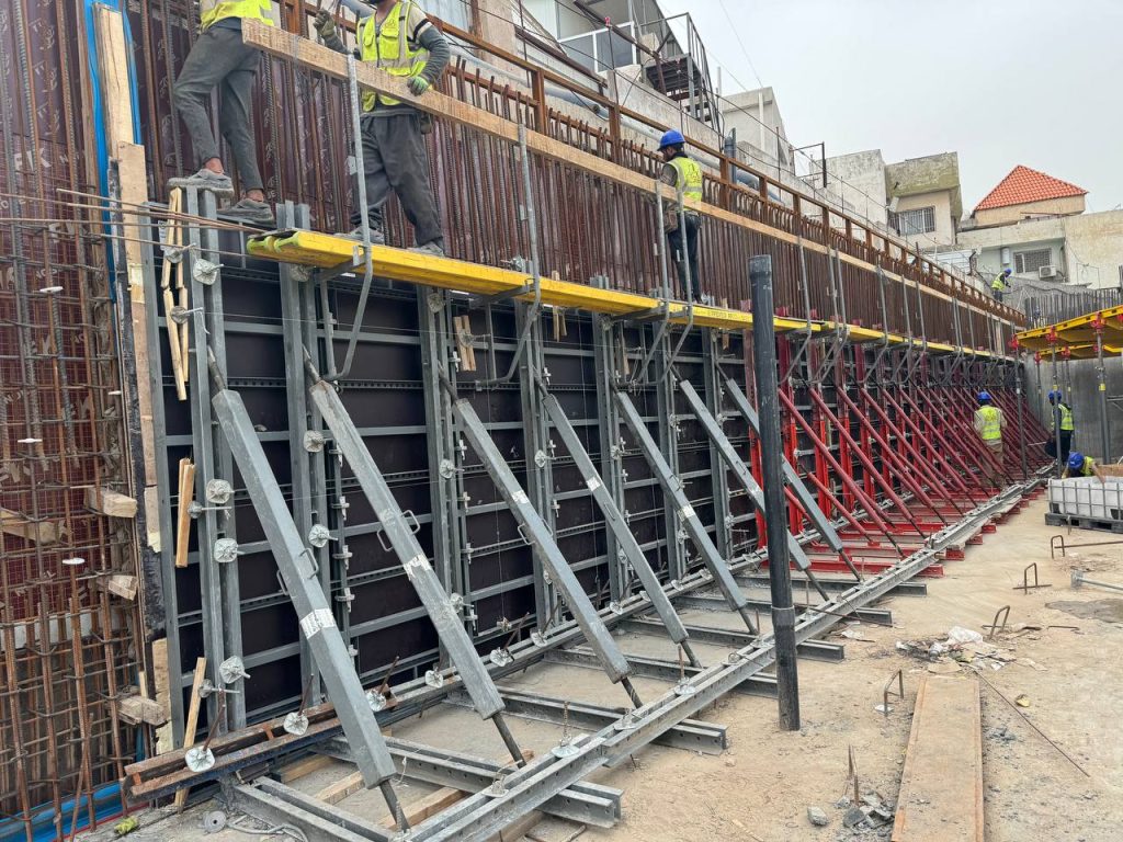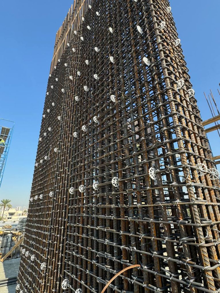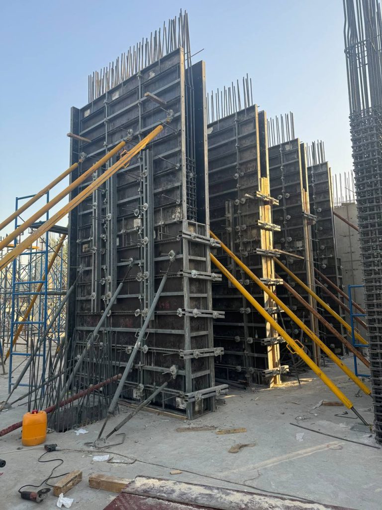 مشروع ابراج الجادرية السكني متكون من برجين بعدد طوابق ٢٨ طابق تم تنفيذ الهيكل الخرساني باستخدام انظمة قوالب مختلفة منها البيري سلاب , دوكا سلاب ، دومينو